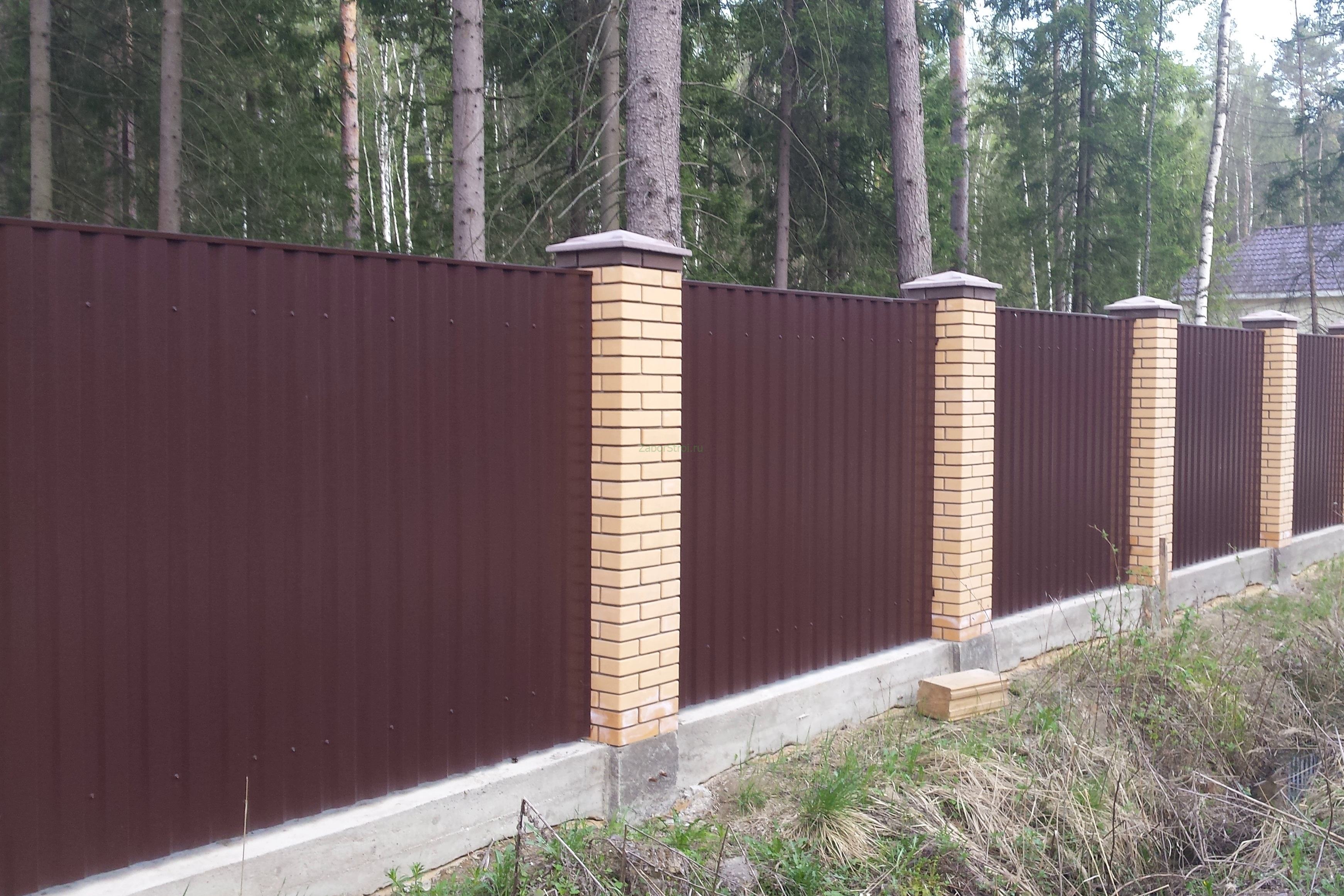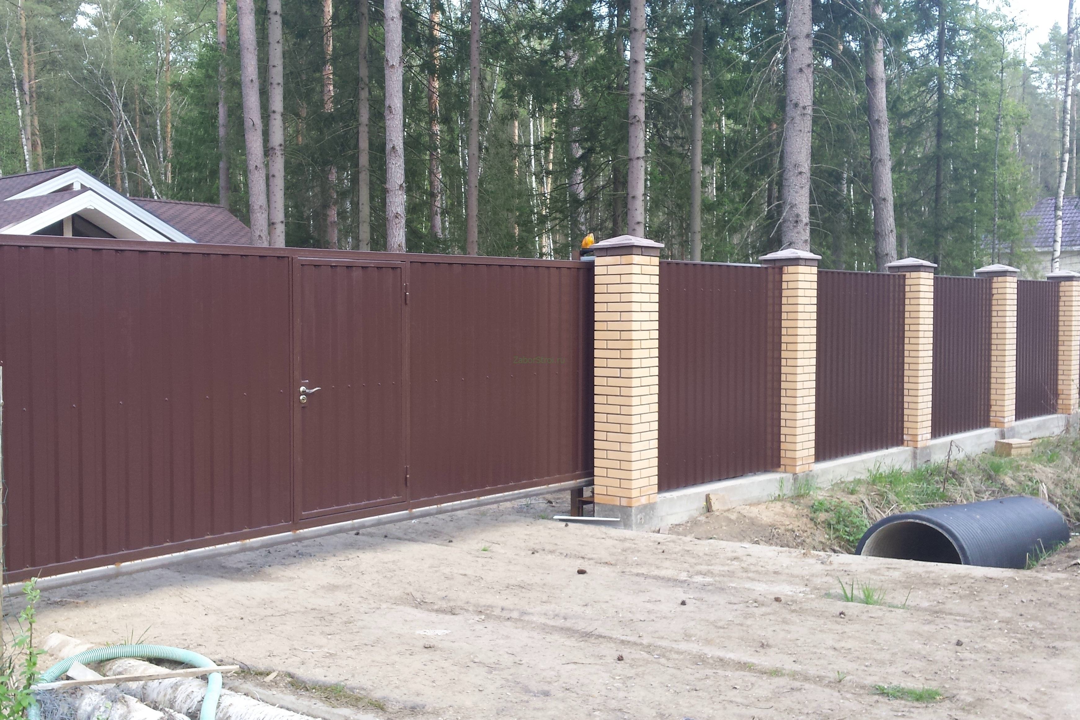 Откатные ворота из профнастила на винтовых сваях (цена на бетонном основании +20000р)